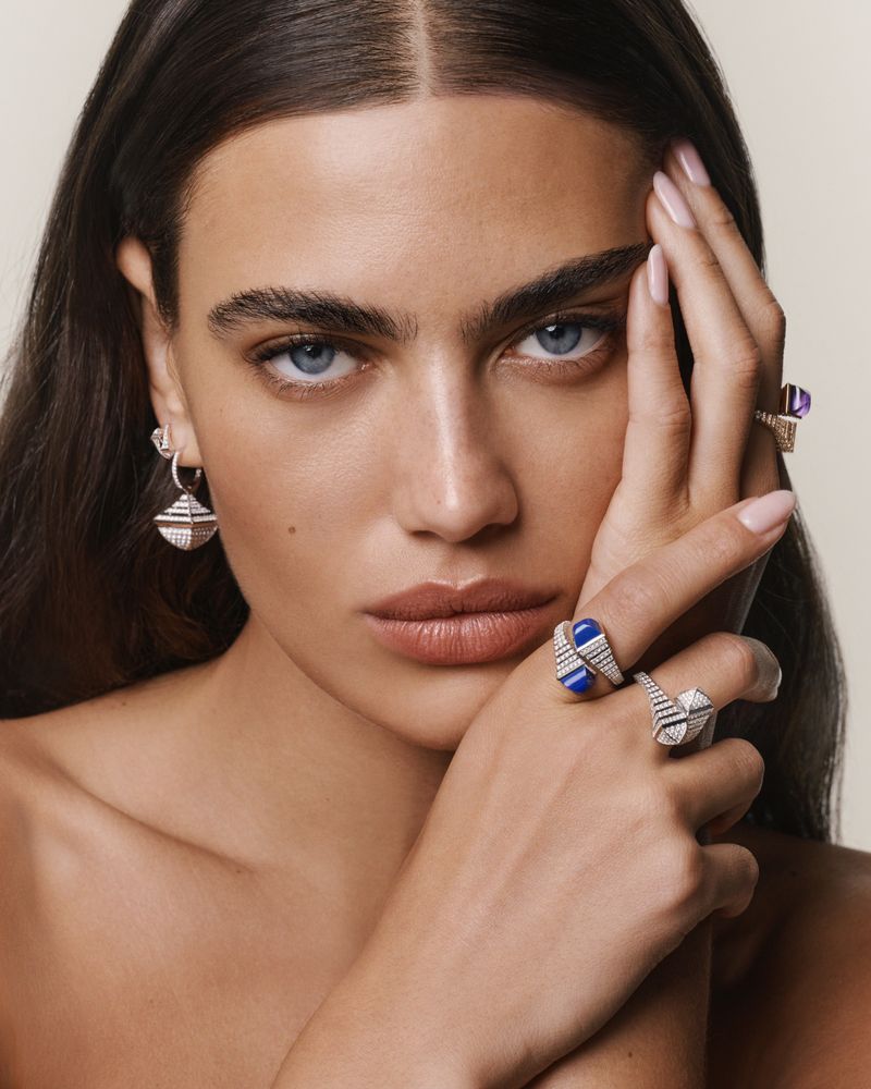 Cleo is MARLI’s signature collection, defined by its architectural pyramid motifs—a modern symbol of elegance and power. Every creation is crafted in 18K gold with diamonds and gemstones, engineered with precision and designed for timeless wear.
