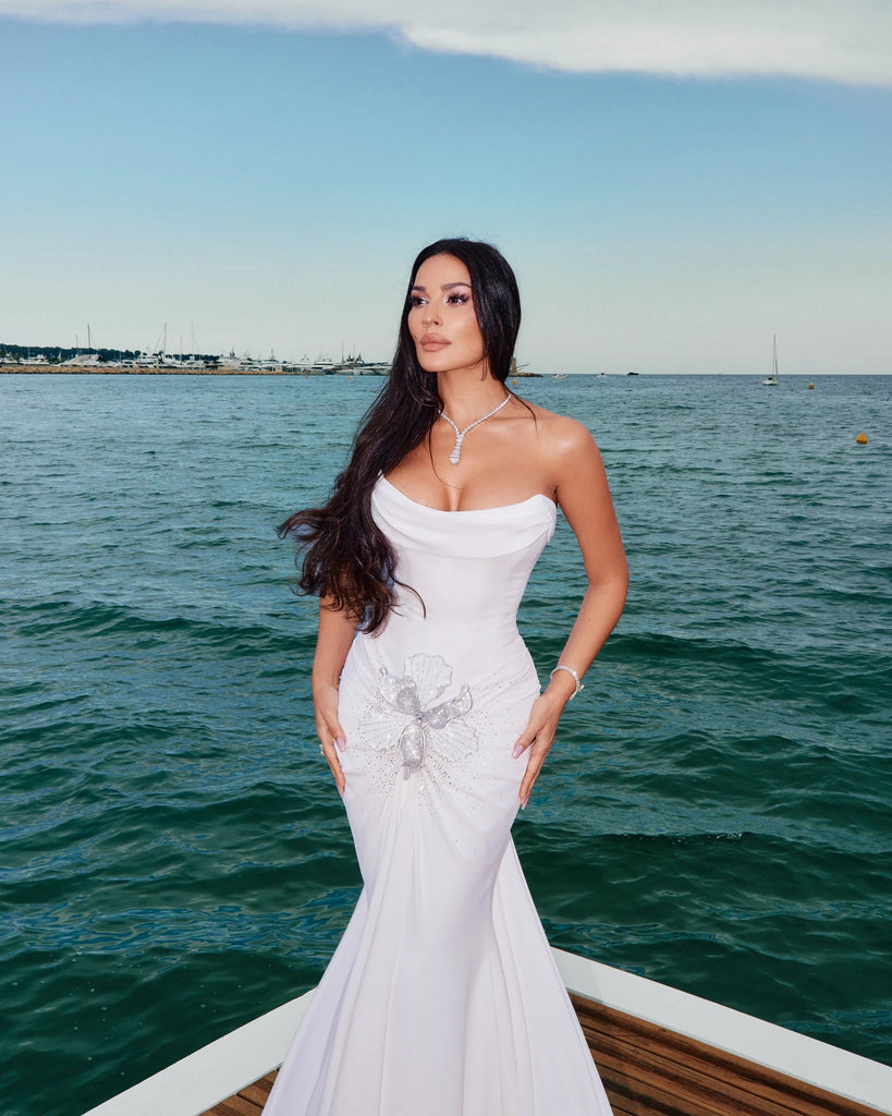 At the 2025 Cannes Film Festival, Nadine radiated in MARLI’s iconic Cleo Sculpt necklace in white gold and tapered diamonds—a striking expression of the brand’s architectural strength and refined femininity.